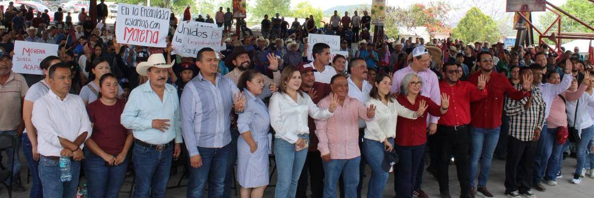Santa Catarina, SLP.- Desde el corazón de la zona Xi’úi, en la comunidad de Santa María Acapulco, municipio de Santa Catarina, la presidenta estatal de Morena, Rita Ozalia Rodríguez Velázquez, encabezó una Asamblea Informativa Municipal acompañada por el presidente municipal Juan Carlos Ramos y los diputados Francisco Castillo y Roberto García Castillo.